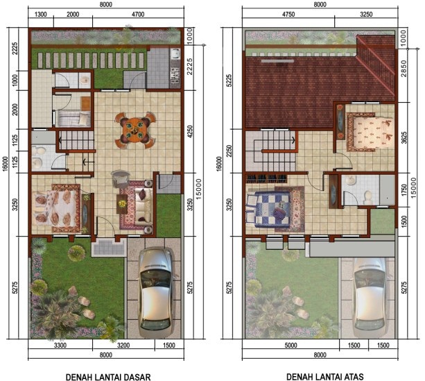 Denah rumah minimalis dua lantai ini bisa didesain dengan banyak variasi yang berbeda. Yang terpenting pembagian ruangannya seimbang dan serasi. Kelebihan dari rumah dua lantai ini adalah terdapat kamar mandi pribadi di beberapa kamar. Pembatas ruangan hampir seperti rumah satu lantai, hanya saja ada banyak jenis ruangan di rumah Anda. Berikut beberapa referensi denah rumah minimalis 2 lantai yang mungkin bisa menambah inspirasi untuk Anda.
